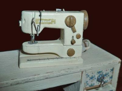 Pour une machine à coudre de ± 4 cm de longueur sur 2 cm de largeur (plateau), et ± 3 cm de hauteur.
